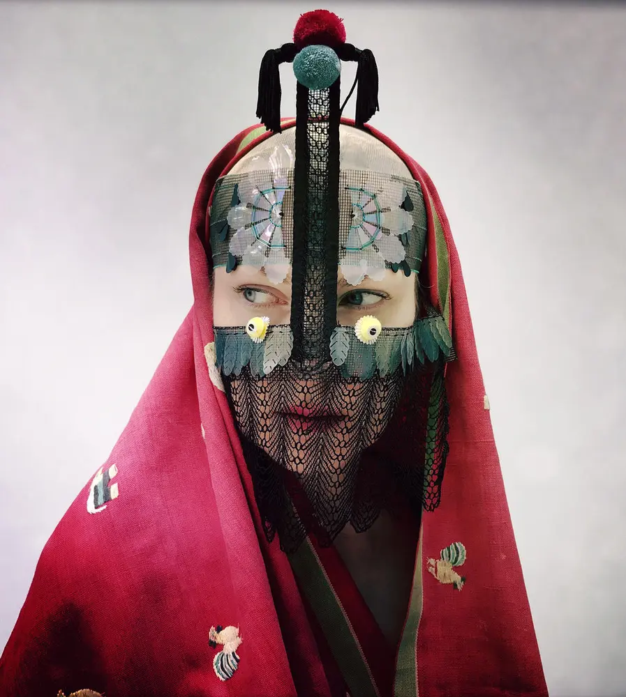 «Jeg har brukt blonder båret av Camilla Collett og 200 år gammelt Geisha-hår sammen med hverdagsmaterialer funnet på gaten», sier Magnhild Kennedy, aka Damselfrau. Hør henne fortelle om maskene sine i samtale med kurator Steffen Wesselvold Holden.