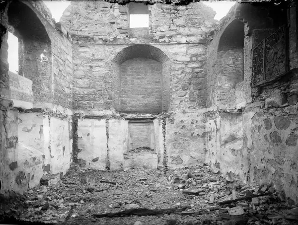 Selve strukturen av anlegget, veggene, og delvis også tak og vinduer står igjen.