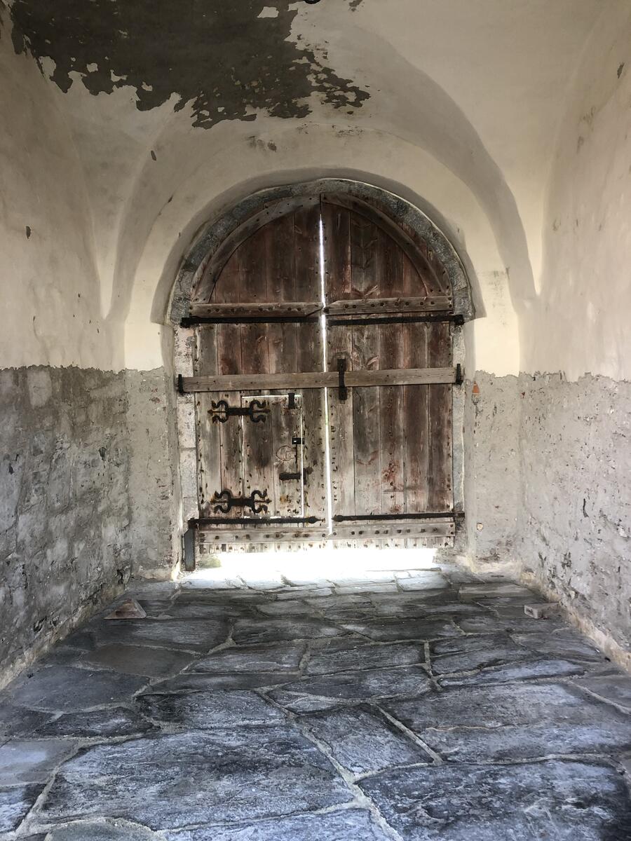 Selve portalen er datert. Nederste stein på høyre side har årstallet 1656 hugget inn.