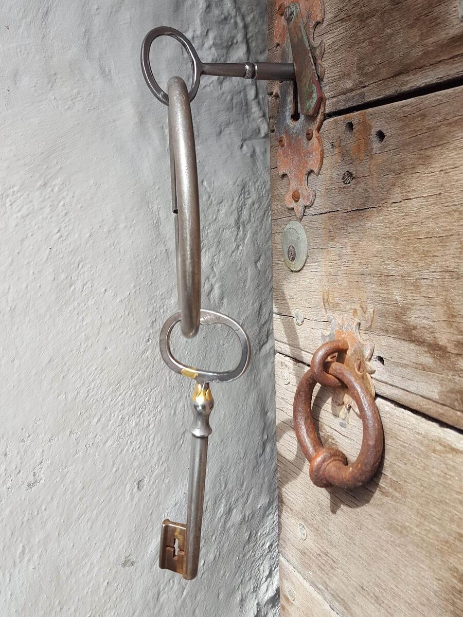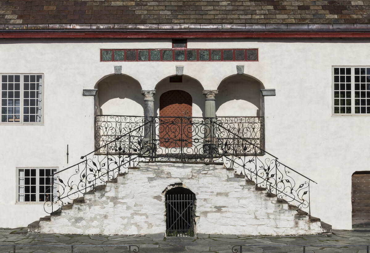 Også det enklere gelenderet i trappa mellom øvre og nedre gårdsplass er fra 1600-tallet.