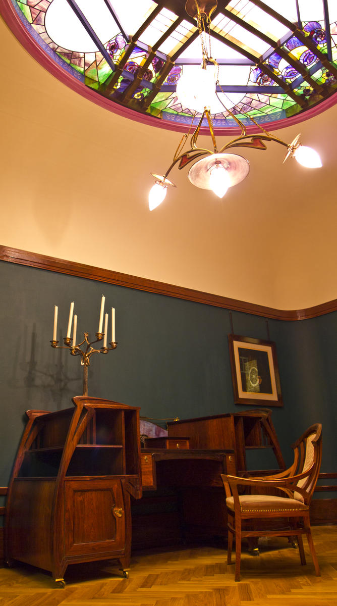 Jens Thiis, director of the museum from 1895, was radical in his approach and was the driving force for making a collection of modern arts and crafts from the turn of the century. His particular interest in Art Nouveau is the reason the museum has a room designed in its entirety by Belgian architect Henry van de Velde in 1908. Henry van de Velde (1863-1957) was a pioneer, making a break with old styles. The office interior houses several of his iconic furniture pieces. The room is today, after a restoration based on van de Velde's original drawings, a Gesamtkunstwerk, i.e. a complete art work in the spirit of the designer.