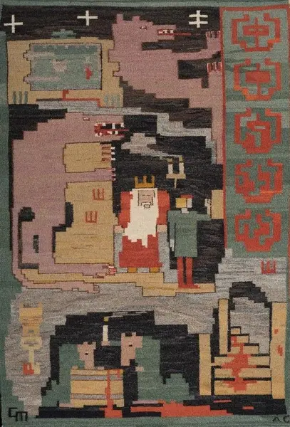 De fleste av Hannah Ryggens tepper er for tiden utlånt til Schirn Kunsthalle i Frankfurt i forbindelse med årets bokmesse. Hannah Ryggen-senteret har derfor gleden av å presentere en annen norsk kunstner som også ble kjent i utlandet for sine billedtepper. Maleren Gerhard Munthe (1849-1929) gjorde en stor innsats for norsk kunsthåndverk rundt 1900. Han regnes som en allkunstner, som arbeidet på tvers av ulike kunstarter og designet både billedvever, interiører, sølv, porselen og bokillustrasjoner. Mest kjent er kanskje praktutgaven av Snorres kongesagaer (1899), hvor Munthe tegnet forside, illustrasjoner og vignetter. Arbeidene viser inspirasjon fra våre folkeeventyr, folkemusikk samt norrøn historie og mytologi. I tillegg hentet Munthe inspirasjon fra flere land og kunstretninger, eksempelvis art nouveau og den engelske Arts and Crafts-bevegelsen.