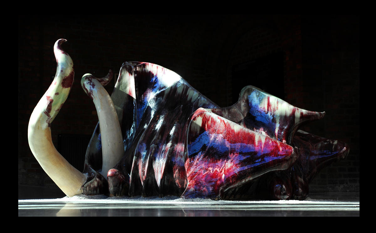 Ahmed Umar, "Thawr, Thawra ثور, ثورة (Ox, revolution)" 2014. 235x110x145cm. Ceramic glazed with Redcopper (Oxblood). Photo: Ahmed Umar