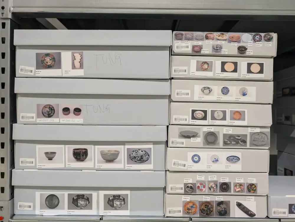 Gjenstander fra NKIMs samling nedpakket og klare for reisen til eksternt magasin.