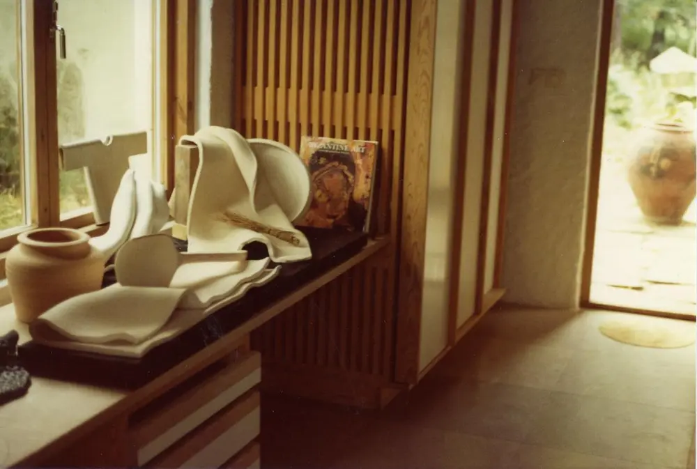 Fire år senere fikk jeg anledning til å besøke Hertha Hillfon i Stockholm. Det ble en av mine største keramiske opplevelser noen gang. Hun levde i en keramisk verden. I entréen sto sko i keramikk, klærne på hengerne var i keramikk og selv handleposen på gulvet var utført i keramikk.
