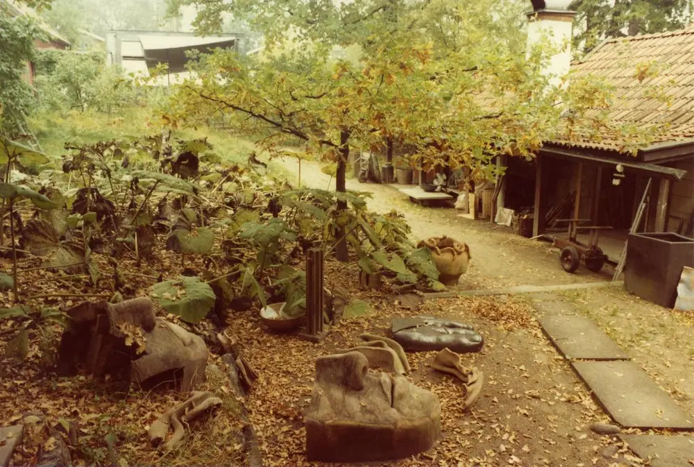 Hagen var fylt av keramiske kroppsdeler under busker og trær. Og i atelieret var mange av hennes keramiske kunstverk stilt ut.
