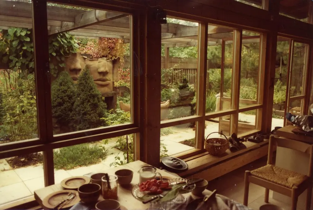 I stuen var mange møbler i keramikk. Vi var invitert til frokost. Det luktet nybakt brød, men brødet på benken var utført i keramikk, likeså kledet som lå rundt brødet. Men hun hadde bakt virkelig brød også, så det ble en god og interessant frokost.