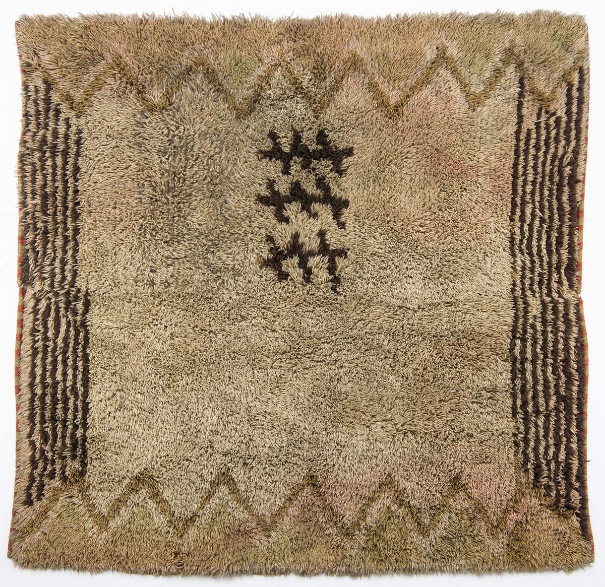 En museumssamling er som et skattkammer. En av de skattene som jeg har funnet og som betyr mye for meg, er denne rya fra Orkdal. Den skiller seg ut blant det jeg har sett av båtryer. Form og funksjon glir her sammen i en helhet, og veversken har hatt et overskudd og et særegent talent. Midt i teppet er det knyttet inn – med flossknuter – abstrakte former i sauesvart som nesten kan minne om hieroglyfer. Ryas bunnfarge er beige, og fargen har en egen glans som er skapt av den blanke ullen til utegangersauen. Øverst og nederst på teppet er det smale, horisontale rekker i den dype, sauesvarte naturfargen, og på hver langside er det vevd en bred sikksakkbord i brun, beige og lys grønn. Denne helhetlige teppekomposisjonen danner et abstrakt billeduttrykk som har et tidløst preg. Den kunne nesten like gjerne være vevd i dag, av en kunsthåndverker.
