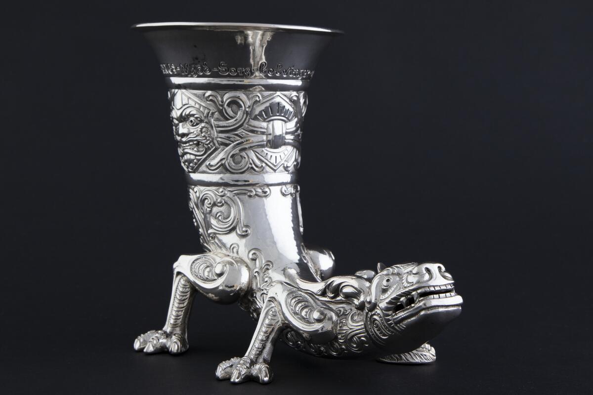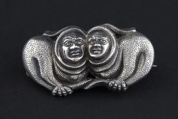 Monstre og mytologi har lange tradisjoner i kunsten. Over hundre år før Grüner-Moström lagde disse lysestakene lagde gullsmed Henrik Møllers fabelaktige drikkehorn og brosjer i sølv. Verkene viser drager som er brølende, bitende og litt skremmende i all sin skjønnhet.