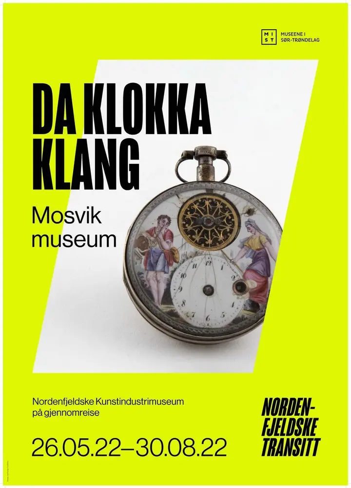 Disse klokkene er en del av Nordenfjeldske Kunstindustrimuseums ursamling. Her de ligger på utstilling, «som perler på en snor» akkurat som de pliktoppfyllende elevene i Margrete Munthes sangtekst, nyter de likevel en slags ferietilværelse der det ikke stilles presise krav til dem. De har stoppet på hvert sitt tidspunkt – den ene motsier den andres beskjed. Det er jo også helt i orden når det er lørdag, eller sommerfri, og du kan ta deg tid til et museumsbesøk. Akkurat nå er det ikke noe du skal rekke.