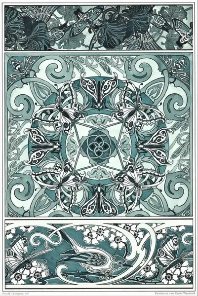 -  1/1Arnold Lyongrün, Plansjeverk nr. 27 fra "Neue Ornamente" (1899), utgitt av Verlag von Ernst Wasmuth Tilhører Nordenfjeldske Kunstindustrimuseums bibliotek (NK5076) | Foto: Nordenfjeldske Kunstindustrimuseum