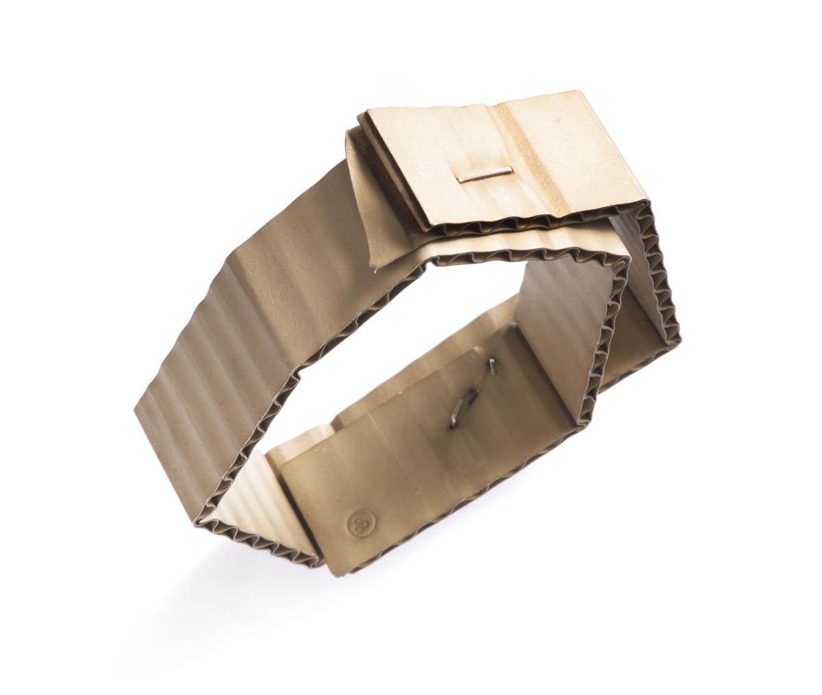 David Bielander, "Wellpappe" (Cardboard) (2015). Materials: bracelet, painted silver, white gold (9 x 8,5 x 2 cm) Foto: Guri Dahl | privat eie