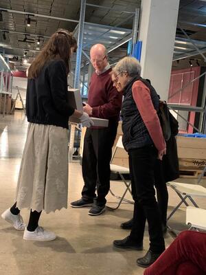 Artist's talk mellom kunstner Jens Erland og kurator. Foto: NKIM